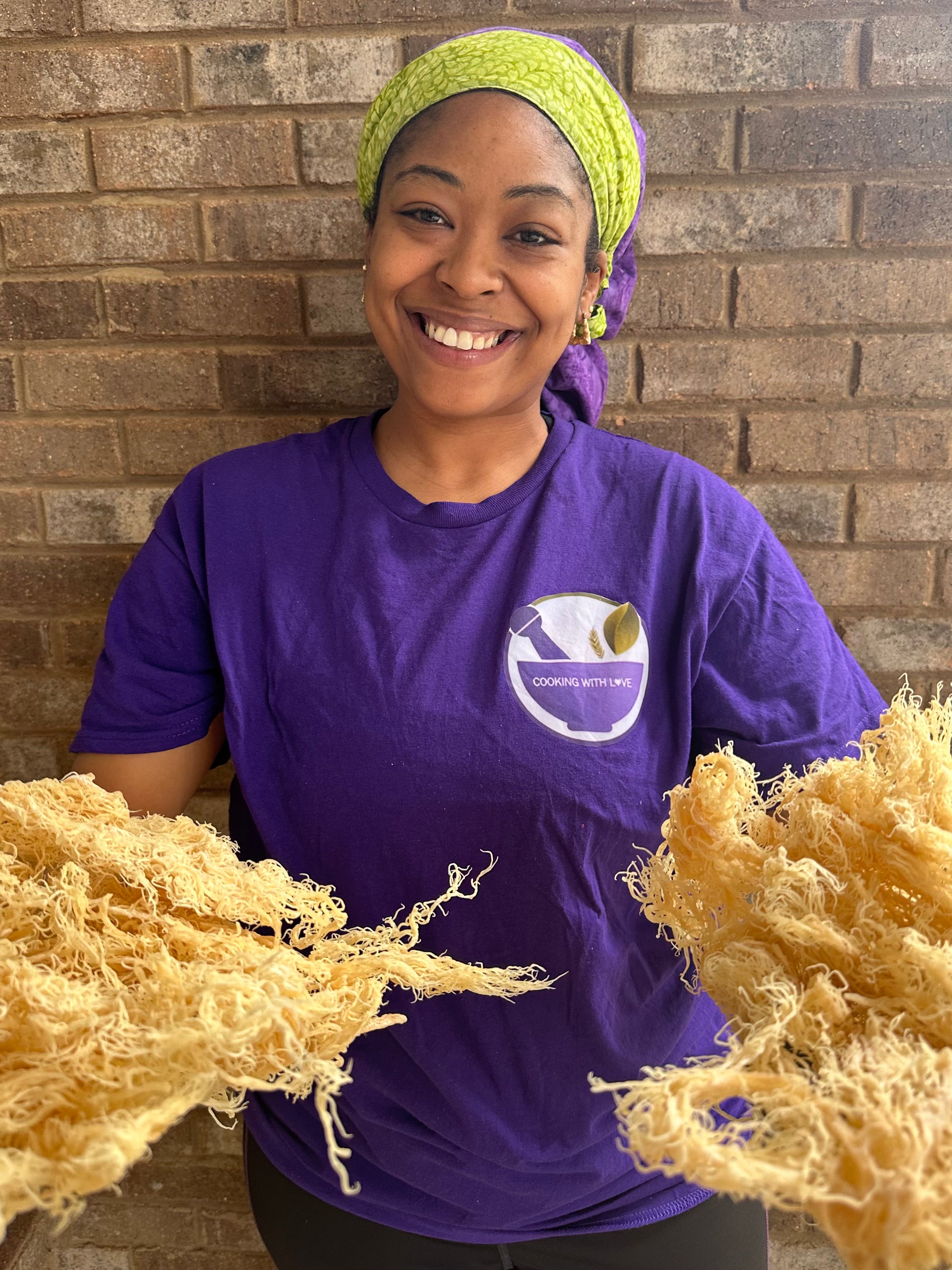 Born and raised in Los Angeles, with deep roots in New Orleans, Mekala shadowed her Paternal grandmother while cooking for thousands of people across Los Angeles, and she watched her paternal grandfather take all kinds of herbs and elixirs to stay healthy. Mekala went on to pursue a career as a psychotherapist, but when her granny passed away, she found the two worlds colliding in a state of depression. Besides going to therapy herself, the one thing that lifted her back to positivity was making nostalgic dishes, working with herbs, and making elixirs herself that brought her even closer to Granny’s spirit. The most important ingredient in any dish, was LOVE. Today, Cooking with Love embodies all of the above; offering quality products such as her Famous Peach Cobbler Sea Moss, herbs, wellness elixirs, and an holistic approach to healing. Mekala is a true humanitarian, serving the community through wellness and LOVE.